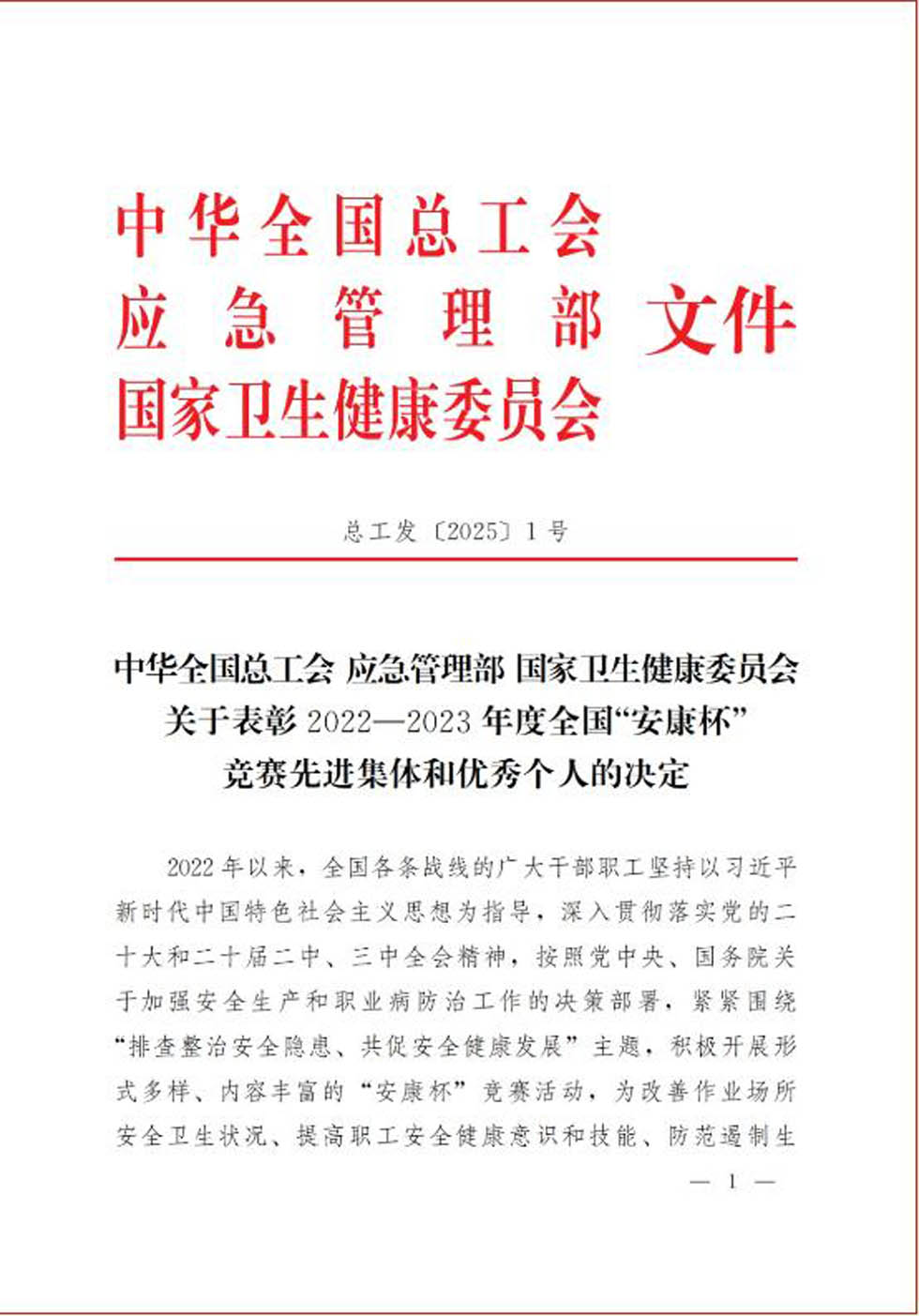在中華全國總工會(huì)、應(yīng)急管理部、國家衛(wèi)生健康委員會(huì)組織的2022—2023年度全國“安康杯”競賽先進(jìn)集體和優(yōu)秀個(gè)人的評選中,食用鹽公司成品車間叉車班組榮獲全國“安康杯”優(yōu)勝班組。