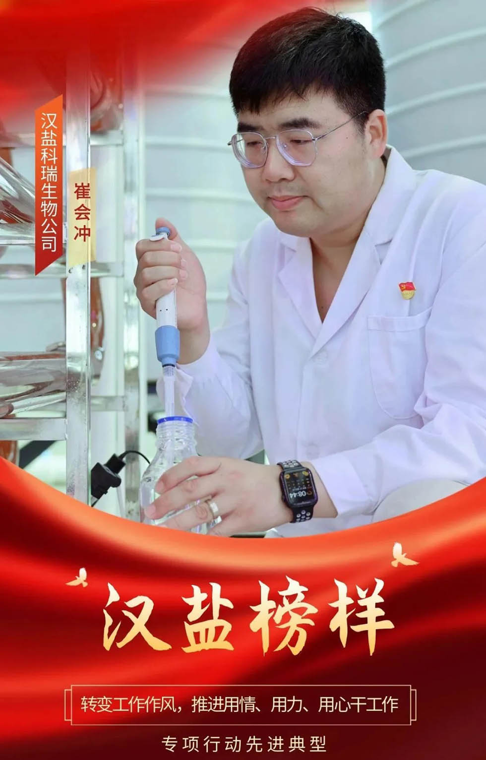 崔會沖,漢鹽科瑞生物公司運維管理部部長。他時刻以增強政治自覺和行動自覺為目標(biāo),持續(xù)開展政治理論和專業(yè)知識學(xué)習(xí),樹立黨員形象,起到模范帶頭作用。他承擔(dān)著生產(chǎn)各項任務(wù)指標(biāo),在保證各項生產(chǎn)工序正常運行的同時,還要負(fù)責(zé)科研工作,白天做好日常工作,晚上更是加班加點準(zhǔn)備各項工作資料,憑著一顆赤誠奉獻精神的心,頑強地追求著自己的事業(yè)。他虛心學(xué)習(xí),在工作實踐中不斷探索,提高業(yè)務(wù)水平,全身心投入到微藻項目建設(shè)中,竭盡全力發(fā)揮個人在生產(chǎn)與技術(shù)上的專長,不斷發(fā)掘微藻養(yǎng)殖領(lǐng)域的內(nèi)在潛力,真抓實干,主動作為,以過硬的專業(yè)素質(zhì)能力推動公司新興產(chǎn)業(yè)、新資源產(chǎn)品落地見效,為公司實現(xiàn)更快更好發(fā)展作出貢獻。他認(rèn)真履行廉潔自律承諾,自覺按照黨的各項紀(jì)律奉公行事,約束自己,嚴(yán)守黨的政治紀(jì)律,自覺地同黨中央在政治上、思想上、行動上保持高度一致,不斷強化自己的法律意識和法制觀念,堅決克服那些凌駕于法律之上的思想認(rèn)識和做法,保持共產(chǎn)黨員的純潔性、先進性,肩負(fù)使命、奉獻全部公休日,他參與或負(fù)責(zé)的工作中從未出現(xiàn)過任何紕漏,無違紀(jì)違規(guī)問題。在生產(chǎn)管理上,他將所學(xué)專業(yè)知識應(yīng)用到生產(chǎn)實踐中去,并在實踐中不斷積累,充實自己,積極投身于企業(yè)發(fā)展作貢獻。